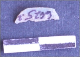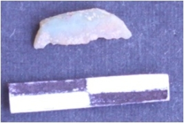| Description / विवरण | Lunate. The sides are sharp and retouched. The ventral surface is plain. The ridges can be seen on the dorsal surface. |