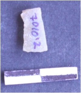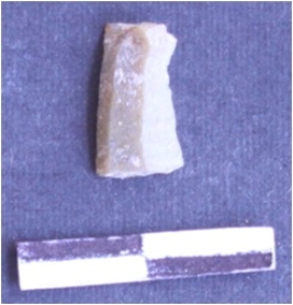 | Description / विवरण | It is a chert blade. The ridges can be clearly seen. It is broken. The ventral surface is plain. It is trapezium in cross section. |