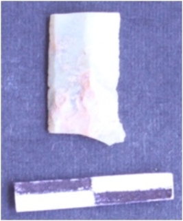 | Description / विवरण | It is a chert blade. The rides can be clearly seen. The ventral surface is plain. The sides are retouched and sharp. It is broken. |