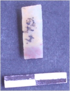 | Description / विवरण | Blade, It is broken and is of chert. The ridges can be clearly seen on the sharp and retouched. The ventral surface is plain. It is trapezium in cross section. |