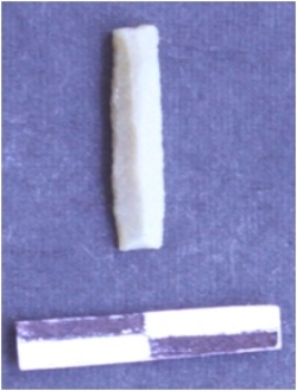 | Description / विवरण | It is a backed blade. The ridges can be seen clearly on the dorsal surface. The sides are sharp and retouched. The ventral surface is plain. It is triangular in cross section. |