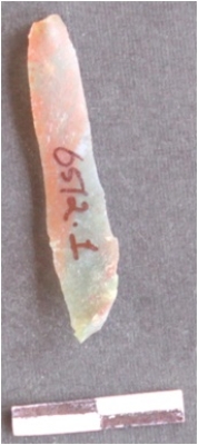 | Description / विवरण | Blade. The sides are sharp and the ridges can be seen. It is long and the bulb of percussion can be seen on the ventral surface. |