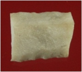 | Description / विवरण | Trench WA 3, Qdt 2, layer 1, depth 12-18 cm It is a small piece of blade made of chert a kind of stone . Both edges are sharp and surface is smooth. Appearance is creamish. |