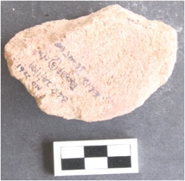 | Description / विवरण | It is a hammer stone. It is broken and the surface is rough. It is brownish in color. |