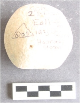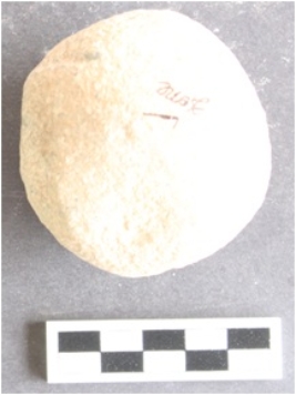 | Description / विवरण | It is a spherical hammer stone. The surface is rough. It is made up of sandstone and is brownish in color. |