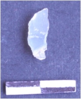 | Description / विवरण | Lunate. The sides are sharp and retouched. It is translucent and white in color. |