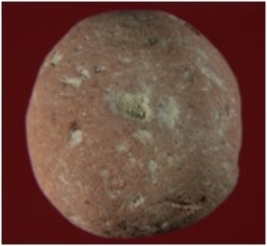 | Description / विवरण | Trench WC 2, Qdt 1, layer 3, This is a ball made of stone. Shape is almost round. Surface is rough course and appearance is brick brown. |