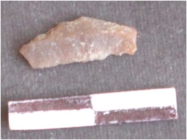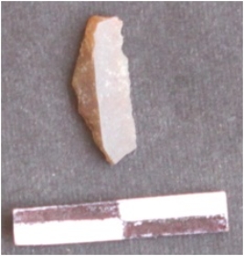 | Description / विवरण | Broken triangle. The sides are retouched and sharp. It is brown in color. One of the ridges can be seen in the dorsal side. |
