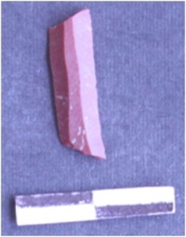 | Description / विवरण | It is a trapezium. The ridges can be seen on the dorsal surface. The sides are sharp and retouched. The ventral surface is plain. |