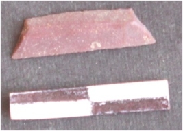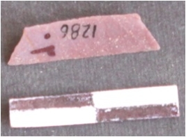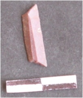 | Description / विवरण | It is a trapezium. The ridges can be seen on the dorsal surface. The sides are sharp and retouched. The ventral surface is plain. |