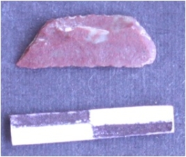 | Description / विवरण | It is trapezium. The sides are sharp and retouched. The ridges can be clearly seen. The ventral surface is plain. |