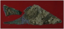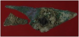 | Description / विवरण | Trench WA2, Qdt 2, layer 4 It is a broken arrow head made of copper and is in irregular shape. Surface is rough with deposition of dirt and presence of patina layer. Appearance is bottle green. |