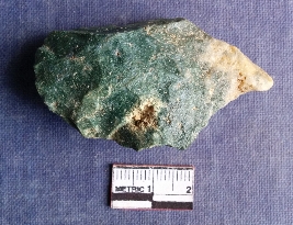 | Description / विवरण | This is a chert stone core scrapper, flakes has been removed from all sides. Some sides are retouched. One small marks of correction possibly due to weathering. |