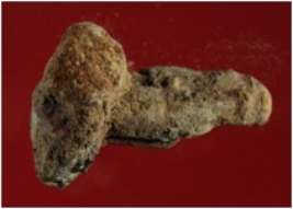 | Description / विवरण | Trench WAO13, Qdt 4, Layer 8, Depth 50 cm It s a nail of iron. Small in size. It has broad tip. Rusted badly and appearance is rusty brown. |