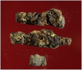| Description / विवरण | Trench WAO13, Qdt 4, Pit 1 S B Layer10, Depth 60 cm It s a broken nail of iron. Its three pieces are available and tip portion is lost. Rusted badly and appearance is rusty brown. |