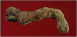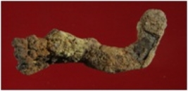| Description / विवरण | Trench WAP13, Qdt 4, Pit 1 S B Layer10, Depth 120 cm It s a broken hook of iron, rusted badly, curved at one end and appearance is rusty brown. |