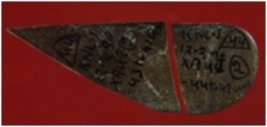 | Description / विवरण | Trench XA 4, Qdt 1, layer 2, depth 43-47 cm It is a blade, broken into two pieces. Surface is smooth and colour is deep brownish. |