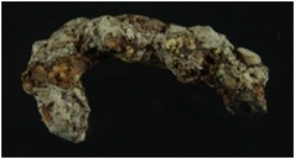 | Description / विवरण | Trench WAP 13, Qdt 4, layer 18, depth 310 cm It is an iron hook . Broken. Badly deformed. |