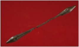 | Description / विवरण | Trench WAM 13,room 3. layer 2, depth 185 cms. It is a antimony rod . Broken into two peces. Made of copper alloy. Surface is smooth. Colour is brownish. |