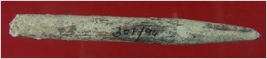 | Description / विवरण | Trench XB 3, Qdt 2, pit 1 SB SH, depth 30 cm This is a broken bone point. It is tapered and pointed and it might have been used as hair band etc. Surface is coarse and appearance is light brownish. |