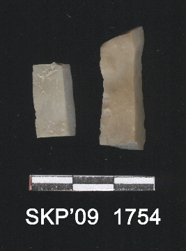 | Description / विवरण | This is a fragment of a chert blade with triangular cross section both side, denticulated side margins. These are chisel marks visible on both ends, naturally un even surface with flaked ridge, brownish in color. |