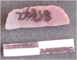 | Description / विवरण | Fragment of Blade made on Moss agate. Both the ends are broken. Triangular cross section, use wear marks along at one edge. |