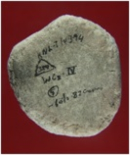 | Description / विवरण | Trench WC 2, Qdt 4, layer 5, depth 82 cm It is a stone grinder. Shape is almost circular. Surface is coarse with some minor chipping. Appearance is greyish. |