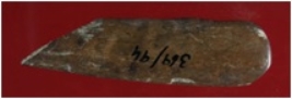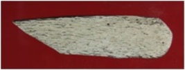 | Description / विवरण | Trench WC 2, Qdt 4, pit 3 SB, layer 5, depth 92-100 cm It is a broken bone point. Its obverse side is smooth and shiny whereas reverse side has a rough surface with minor chipping. Appearance is brownish. |