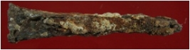 | Description / विवरण | Trench XG 10, west of stupa, depth 180 cms It is a broken nail made of iron. Badly deformed. Appearance is rusty brown. |