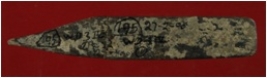 | Description / विवरण | Trench WD 3, Qdt 4, layer 1, depth 8.56 x 3.86 5 cm It is an arrow head made of bone. It has a tip and sharp edges. Surface is rough and dusty. |