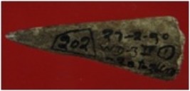 | Description / विवरण | Trench WD 3, Qdt 1, layer 1, depth 26 cm It is a broken bone point. Surface is rough and appearance is brownish. |