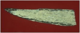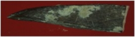 | Description / विवरण | Trench WE 3, Qdt 4, pit 3 SB, layer 1, depth 36-58 cms It is a bone piece. It is narrowing towards tip making it sharp and pointed. Surface is rough with dark brown appearance. |
