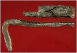 | Description / विवरण | Trench XF 9, layer 7, depth 270 cms It is a broken iron clamp. Badly rusted. One end is bent. |