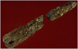 | Description / विवरण | Trench XE 7, Qdt 2, layer 1, depth 15 cm It is a broken nail made of iron. Badly rusted. |