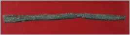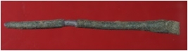 | Description / विवरण | Trench WA 5, Qdt 2, Layer 1, depth 0-22 cm It is a broken rod made of copper. One end is flattened and shaft is round and a little curved. Surface is rough due to presence of hard patina. |