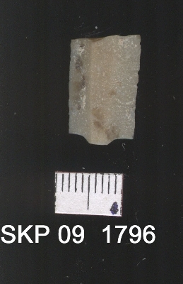 | Description / विवरण | Broken chert blade. The ridges can be seen. Retouching can be seen on the sides. It is trapezium in cross section. |