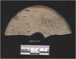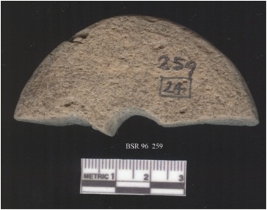 | Description / विवरण | half broken terracotta spindle whorl. It has perforation at the centre. Partly encrusted. Rough surface. |