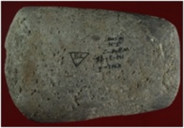 | Description / विवरण | Trench WB 4, Qdt 1, SH, depth 10 cm It is a stone grinder. Shape is trapezoid. Surface is coarse with some minor chipping. Appearance is light brown. |