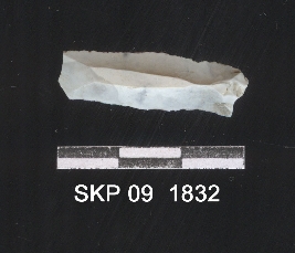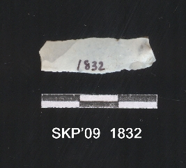 | Description / विवरण | Chert blade. It is retouching in structure. The ridges can be seen clearly. The positive bulb of percussion on the ventral side. |