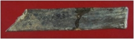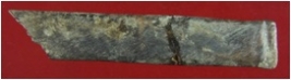 | Description / विवरण | Trench XC 3, Qdt 2, Layer 2, depth 95-106 cms It is a broken part of bone point. Shape is like a flat strip with a little depressed under surface. One of its end is broken and making a pointed tip. Surface is rough with dark appearance. |