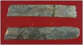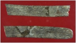 | Description / विवरण | Trench XC 3, Qdt 2, Layer 2, depth 95-106 cms It is a bone point broken into two pieces. Shape of one piece is like a flat strip with a little depressed under surface and the end is broken. Both the pieces are treated and restored. Surface is rough with dark brown appearance. |