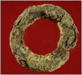 | Description / विवरण | Trench XG 10, Qdt 4 layer 2 It is a iron ring. Circular in shape. Badly rusted. Colour is rusty brown . |