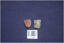 | Description / विवरण | A chert and a chalcedony blade fragments with bulb and distal end broken use mark on the edges. |
