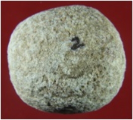 | Description / विवरण | Trench WA 3, Qdt 4, Layer 5, depth 117-137 cm It is a ball made of stone. Surface is rough and shape is round with light dusty brown appearance. |