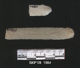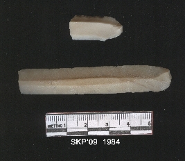 | Description / विवरण | Elongated chert blade fragment, broken on the distal end. Double flake seen ridges on the dorsal side positive bulb of proximal end. |