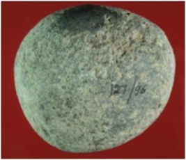 | Description / विवरण | Trench WB 3, Qdt 1, pit 5 SB SH, depth 92 cm It is a ball made of stone. Surface is rough and shape is unevenly round. Appearance is dark grey. |