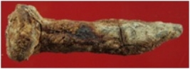 | Description / विवरण | Trench XE 8, Qdt 3, layer 1, depth 65 cm It is an iron nail. Badly corroded. |