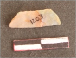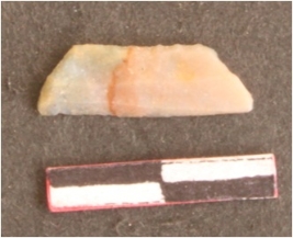 | Description / विवरण | A fragment of a chert blade. Bulb is absent. Retouches on one cutting edge. |