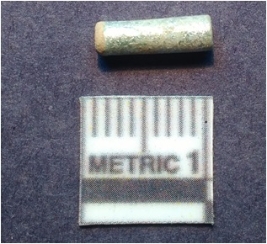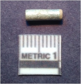 | Description / विवरण | A chert drill bit which is polished. It is rounded on one end and broken on one end. |