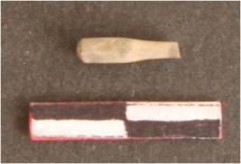 | Description / विवरण | An ernestite drill bit with one end rounded and one end is pointed which is broken. It is polished. |